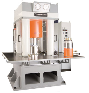 The pressure control in the high-pressure range is effected by a dynamically actuated servo gearmotor which acts onto the pressure transmitter through a low-backlash spindle lifting element. A press capacity of 10 MN is achieved at the maximum hydraulic pressure of 700 bar.