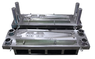 Cutting tool for three-dimensional pre-formed aluminium pressed parts with pre-sprung binders and ejector bases.