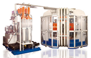 Presse mit 6 unabhängig steuerbaren, hydraulisch angetriebenen und jeweils paarweise gegenüberliegend angeordneten Stempeln. Anders als bei uniaxialen Pressen in Verbindung mit Walker-type, DIA, D-DIA oder Split-Cylinder Hochdruckwerkzeugen wirken die 6 Stempel der Presse direkt und ohne Reibungsverluste auf den würfelfömigen Probekörper.